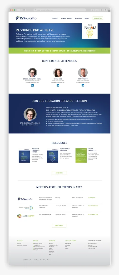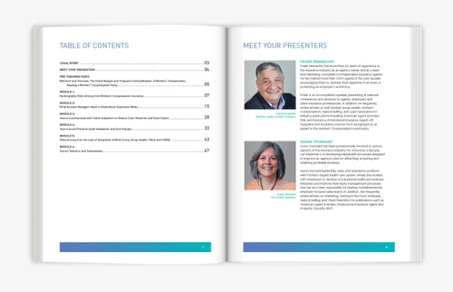 Training offering for insurance professionals. Included a landing page, workbooks, and emails.